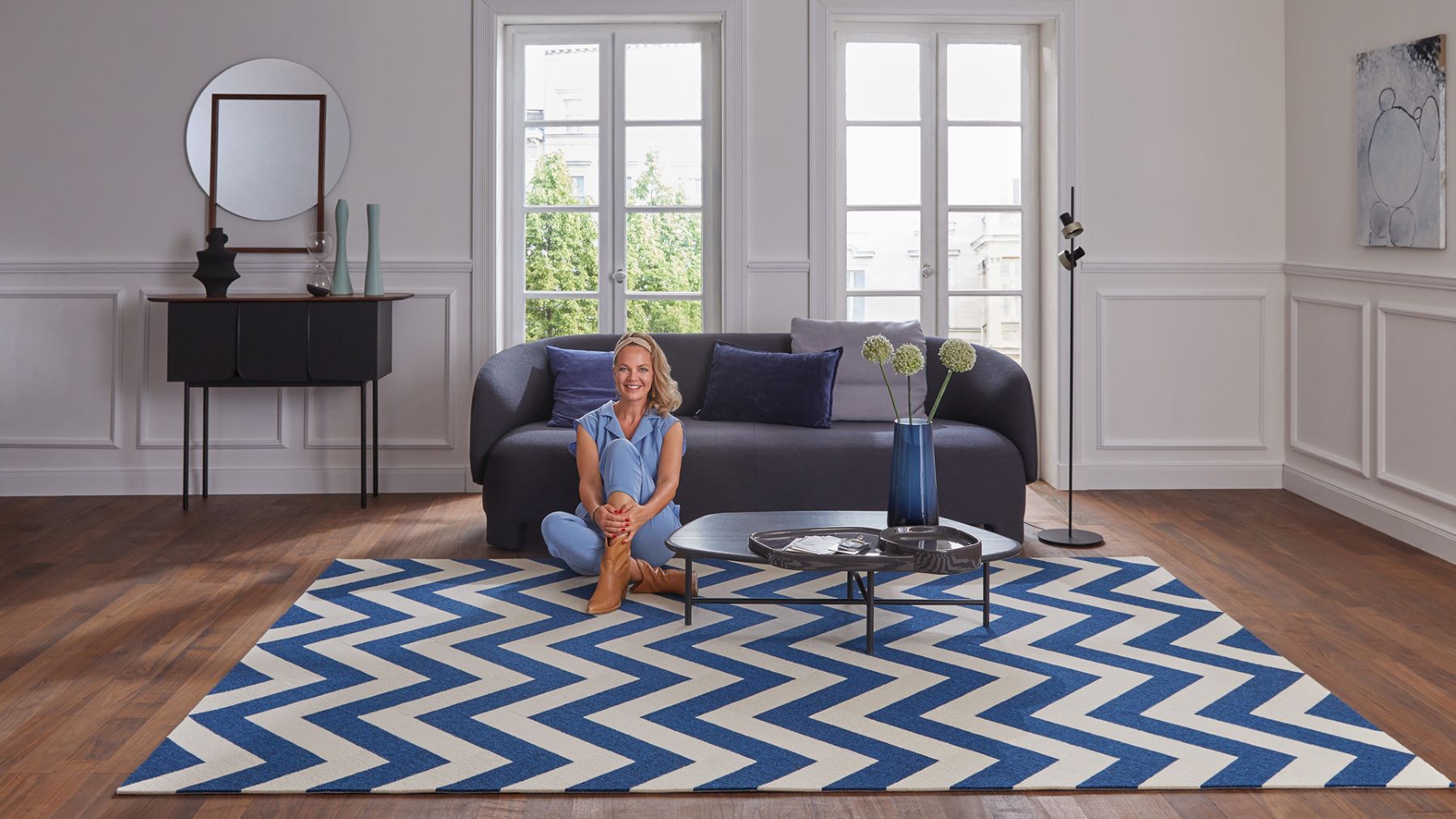 „Die große Farbpalette des tretford Materials hat mir ein intuitives und emotionales Arbeiten ermöglicht. Ein Teppich sorgt für mehr Behaglichkeit, ist angenehm, verbessert den Tritt-, Geh- und Sprachschall im Raum, hält die Füße warm und optimiert bei echtem, natürlichem Material das Raumklima. Von daher dürfen Textilien für ein Wohn- und Wohlgefühl nicht unterschätzt werden.